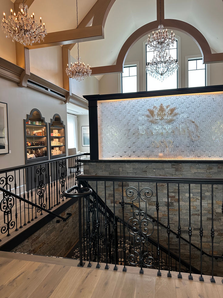 Boothbay Harbor Country Club was a new construction project done in coordination with Knickerbocker Group, who provided design inspiration, interior designs, and custom millwork pieces. The project included providing highly functional and elegant lighting for the private spa, poolside building, basement bar and grill terrace, and associated exterior spaces, a total of about 10,500 square feet. This project required a variety of lighting techniques to provide both specified task lighting for spa services, as well as many layers of ambient and decorative lighting. In exterior spaces up-lighting trees and linear color changing lighting along stonework was carefully implemented to enhance architectural elements.Â